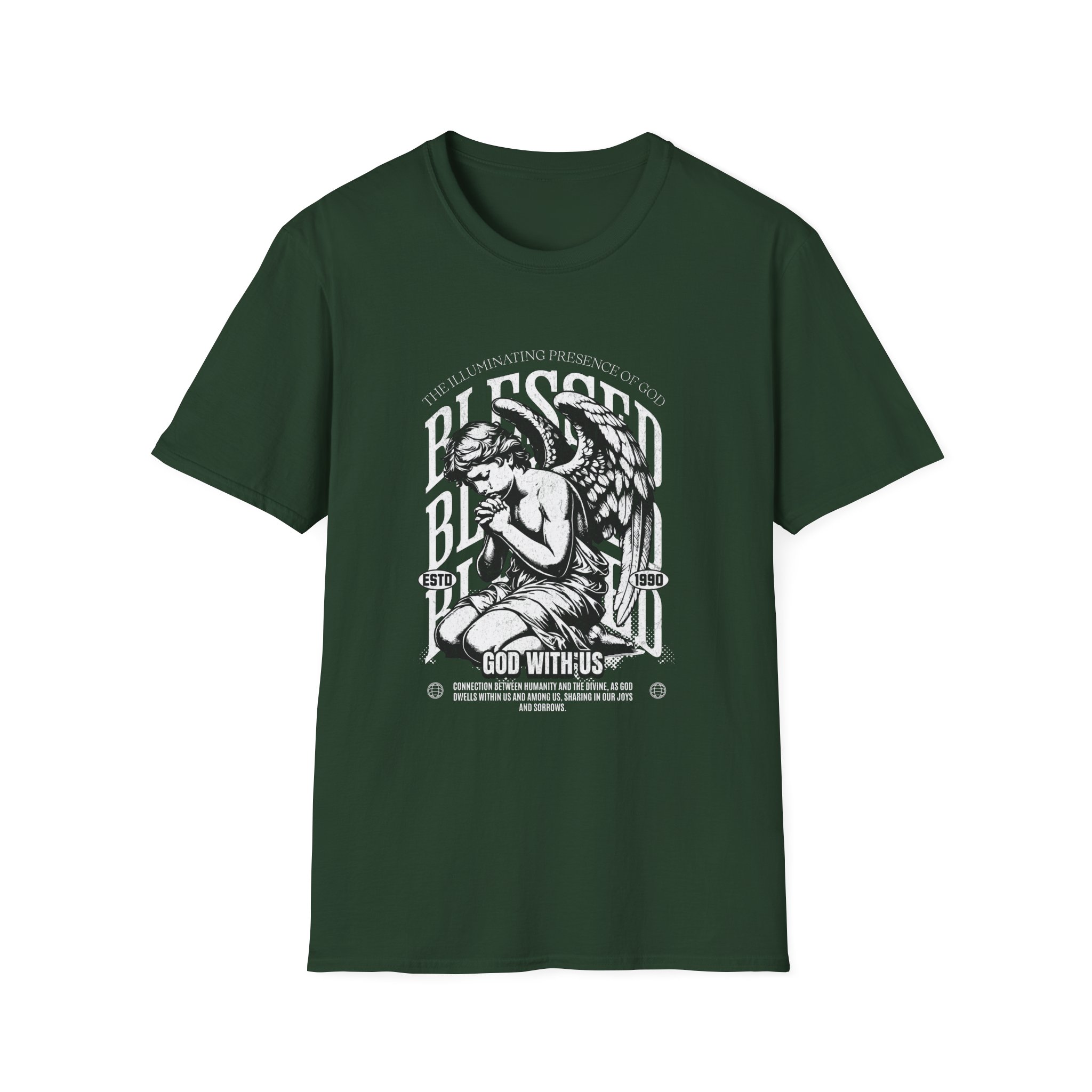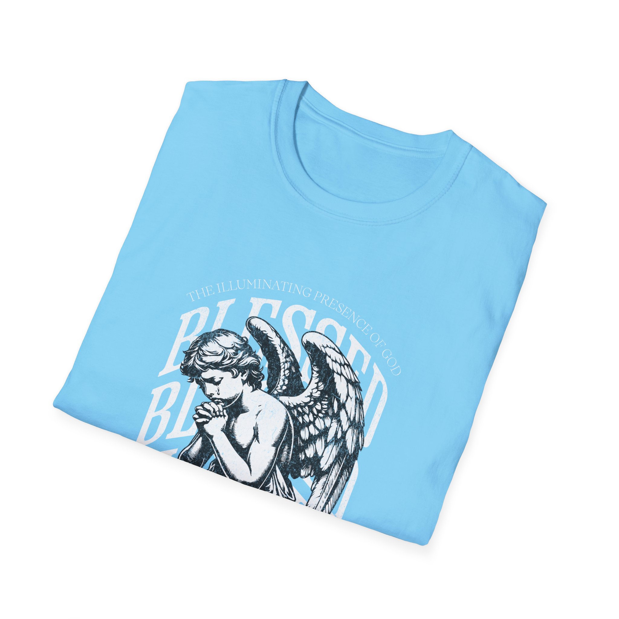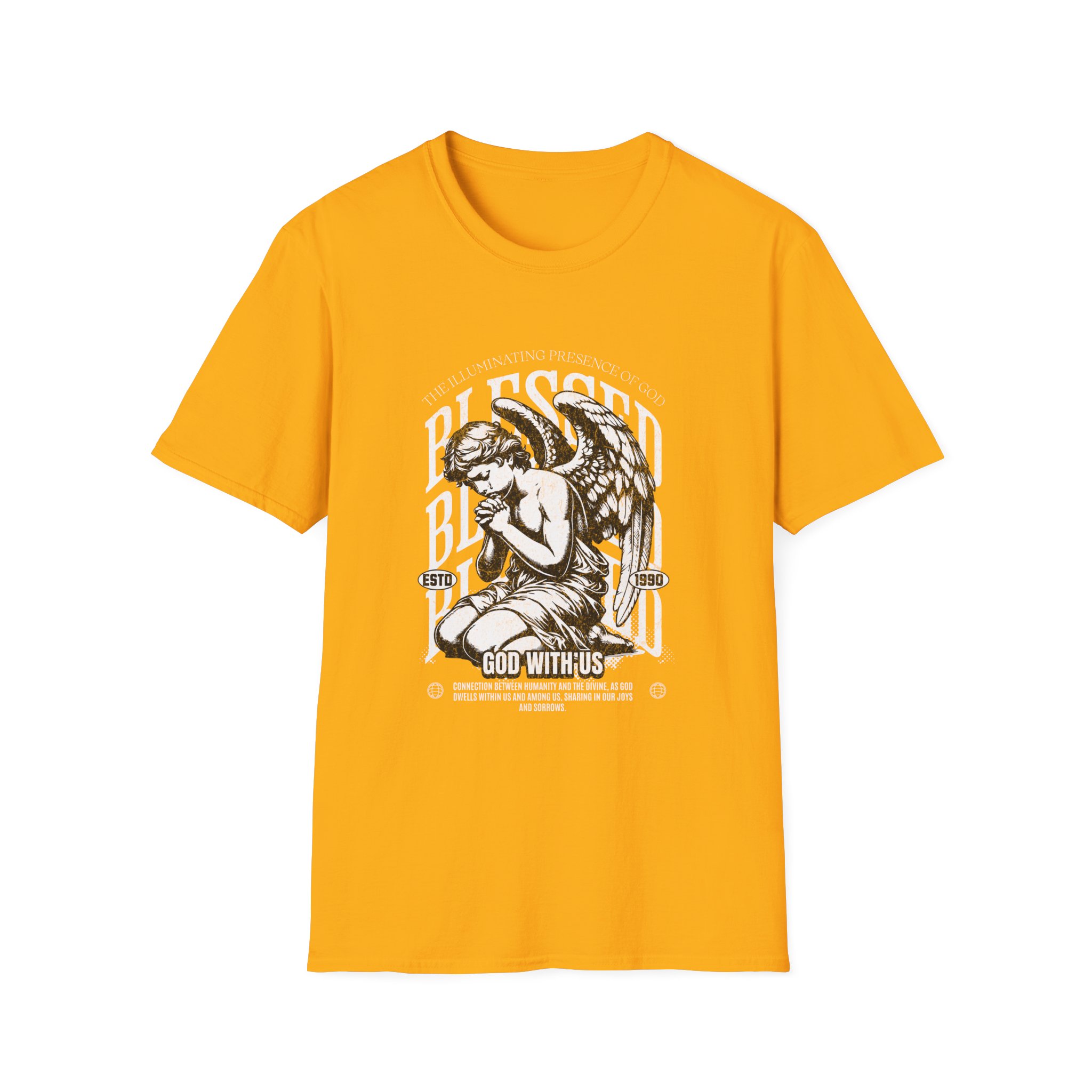 This lightweight crew-neck tee brings a quiet, contemplative edge to everyday wear. The front shows a vintage-style angel illustration and bold typographic elements in high-contrast ink — a design that reads like a worn poster or band tee. It sits close to the body without feeling tight, draping soft and breathable thanks to ring-spun cotton. Wear it layered under a jacket for city nights or solo on warm days; the graphic gives outfits a moody, thoughtful tone that resonates with people who favor expressive, retro-inspired streetwear.