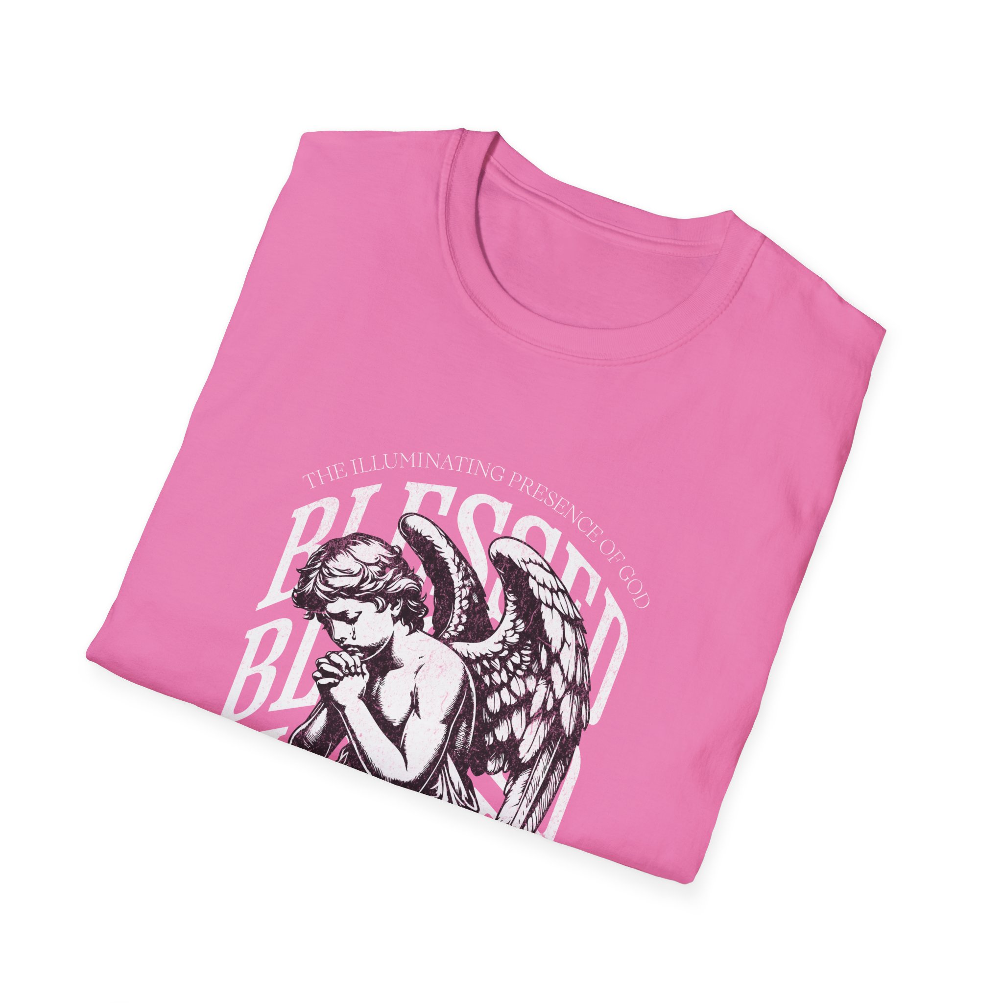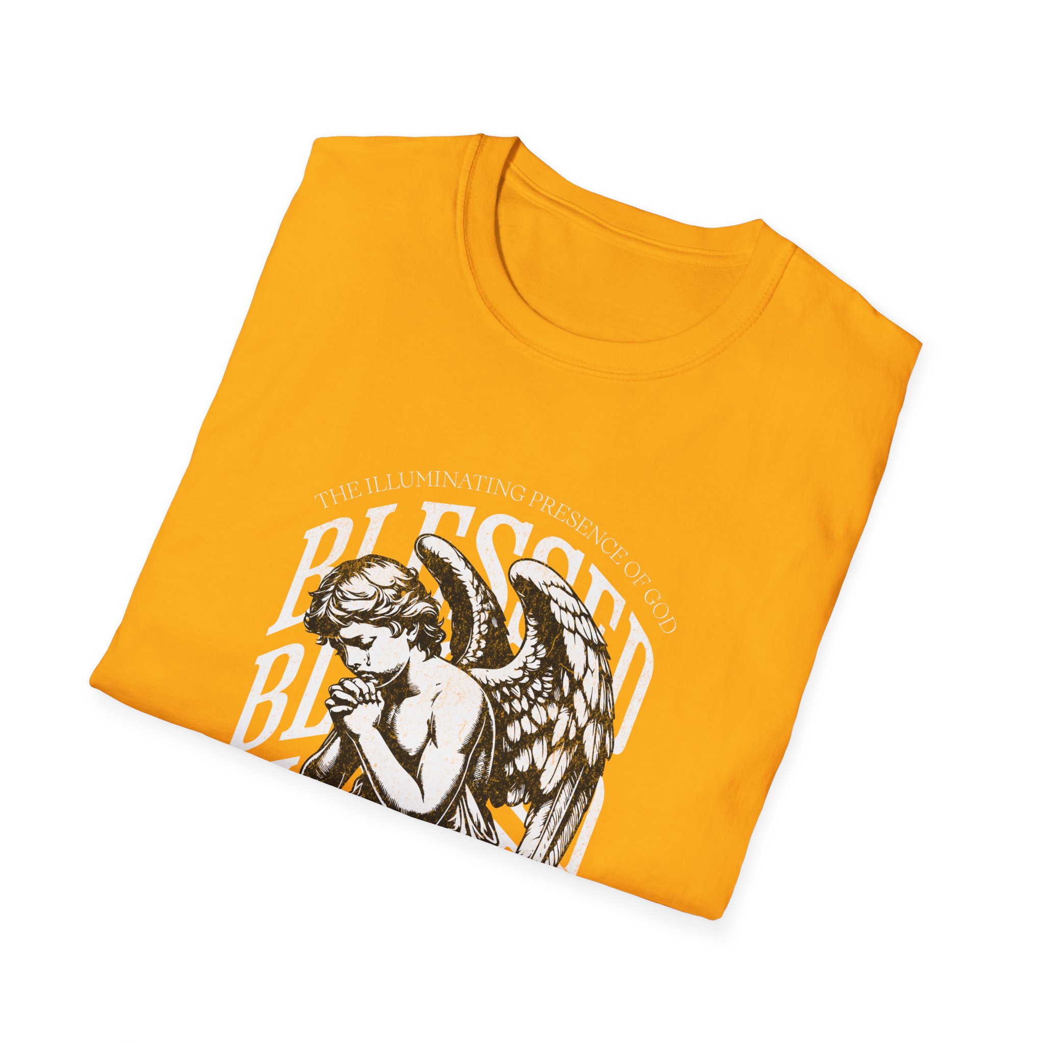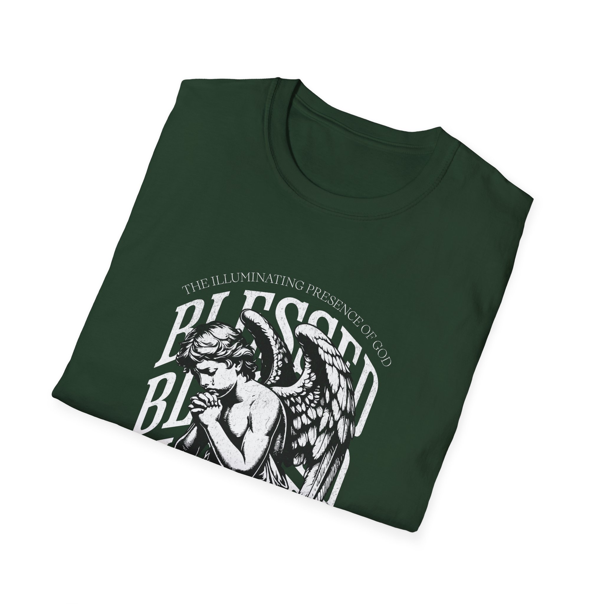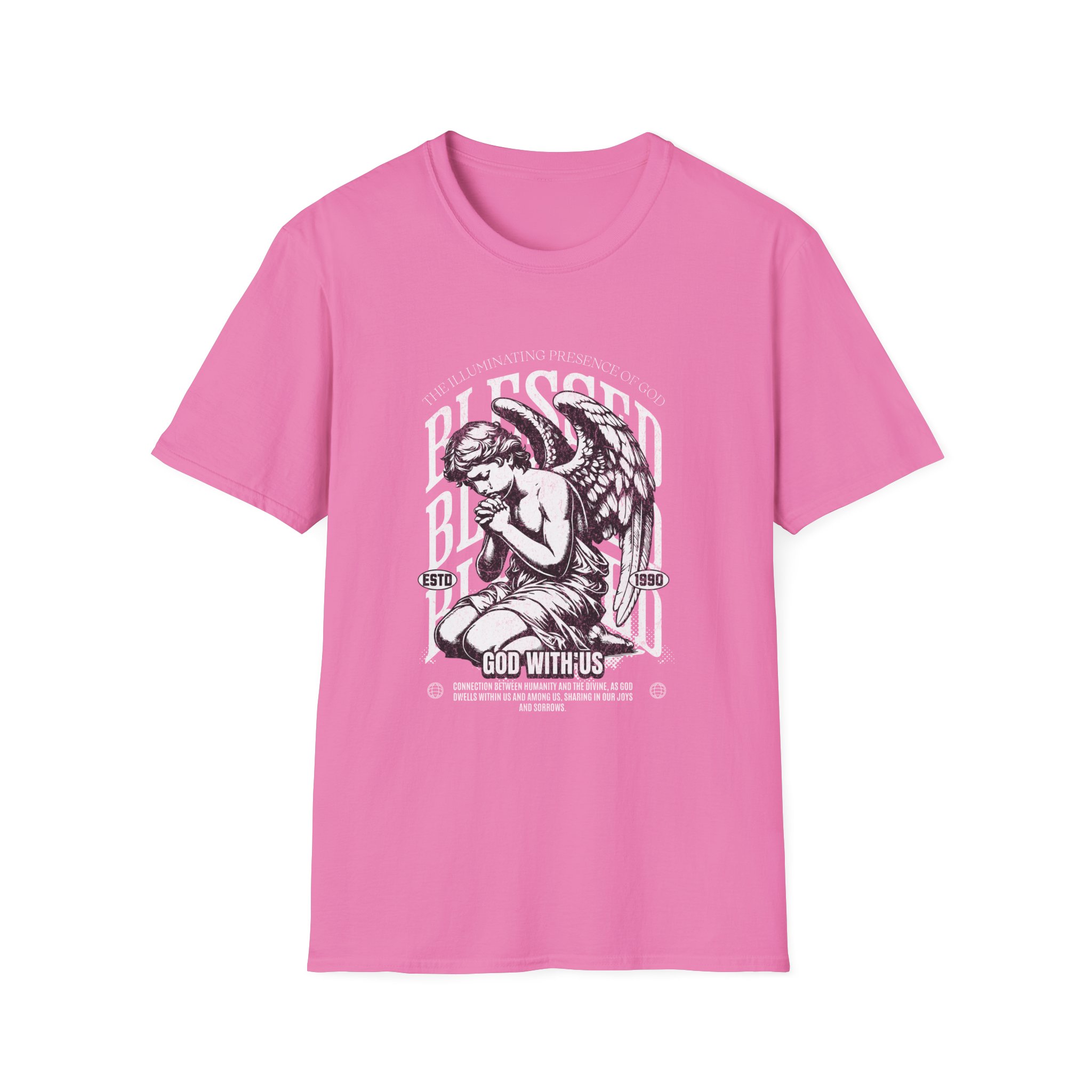 This lightweight crew-neck tee brings a quiet, contemplative edge to everyday wear. The front shows a vintage-style angel illustration and bold typographic elements in high-contrast ink — a design that reads like a worn poster or band tee. It sits close to the body without feeling tight, draping soft and breathable thanks to ring-spun cotton. Wear it layered under a jacket for city nights or solo on warm days; the graphic gives outfits a moody, thoughtful tone that resonates with people who favor expressive, retro-inspired streetwear.