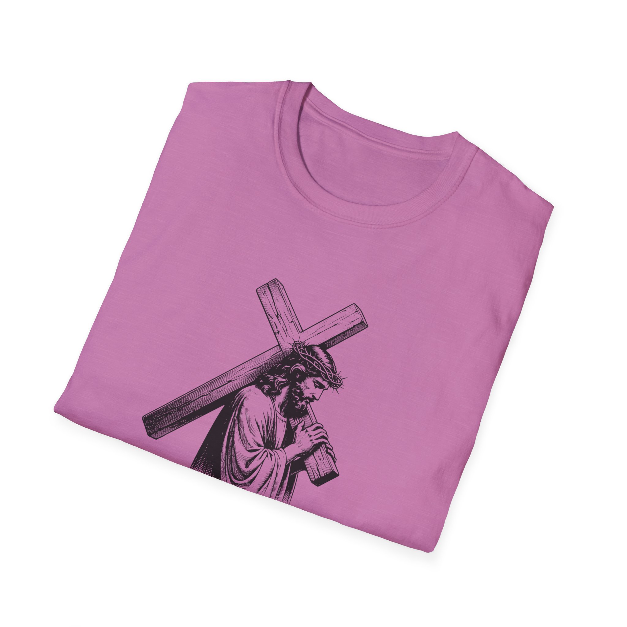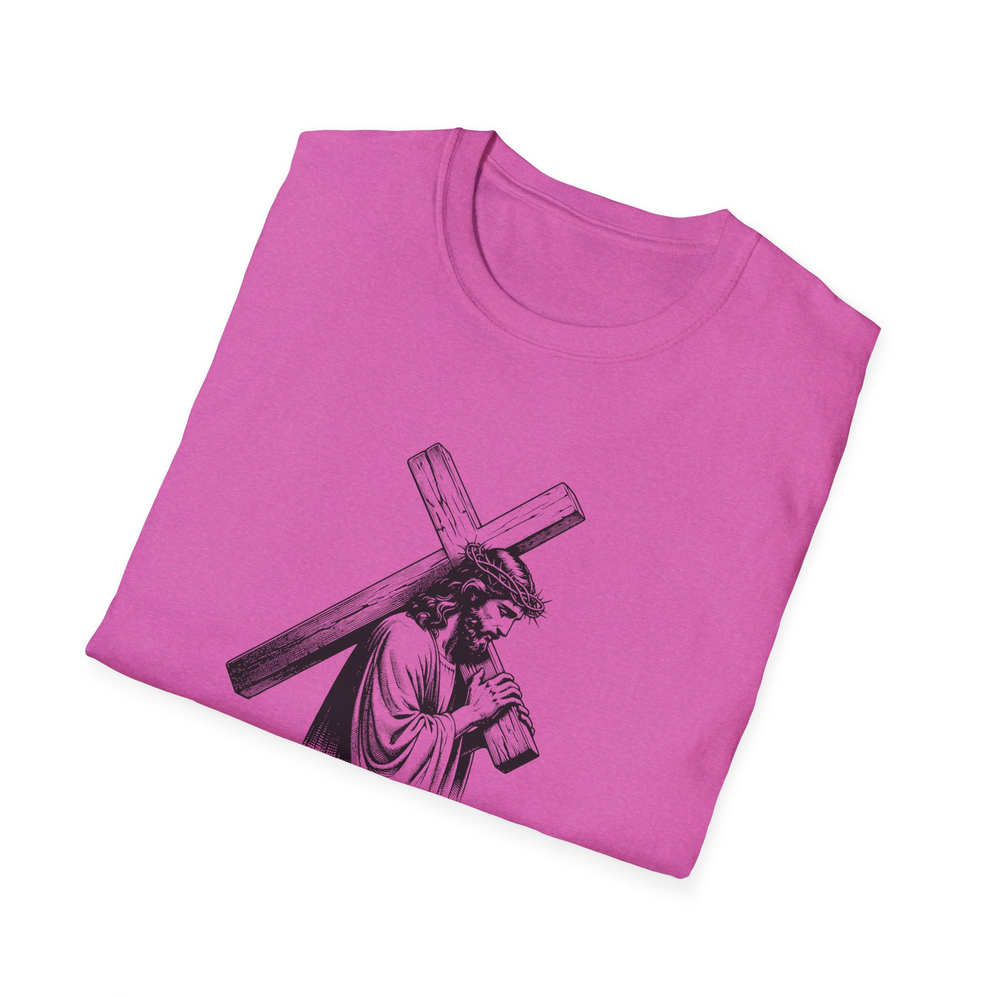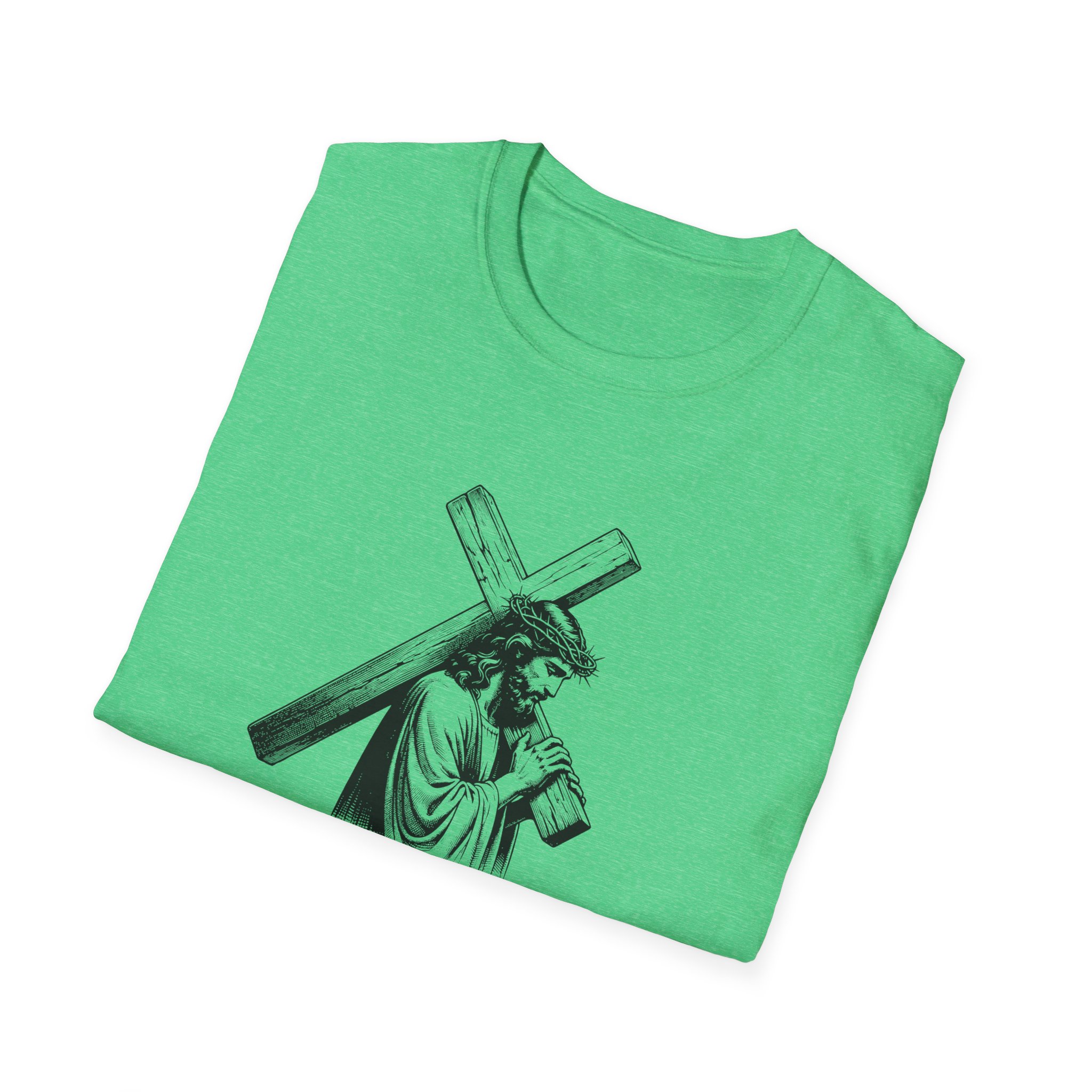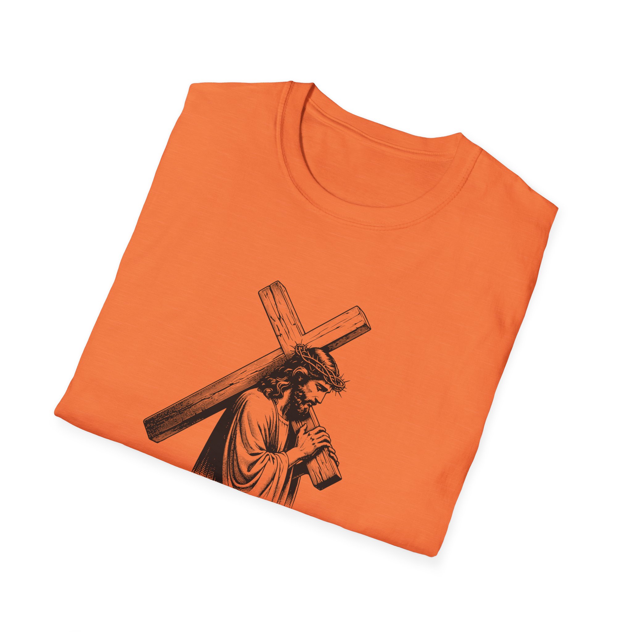 A soft, breathable tee that wears like a quiet statement. This lightweight cotton shirt drapes comfortably over the shoulders and carries a refined black-and-white illustration across the chest — a contemplative figure bearing a cross with the word “Mercy” framed beneath. It feels lived-in from the first wear: smooth ring-spun cotton, a classic crew neck, and a clean, seam-free body that keeps the silhouette simple and versatile. Subtle details — a ribbed collar that holds its shape, twill shoulder tape for stability, and a tear-away pearlized label — make it effortless to wear all day. For those who want clothing that speaks softly about faith, reflection, or meaningful design, this tee slips easily into devotional Sundays, quiet mornings, or layered looks for cooler evenings.