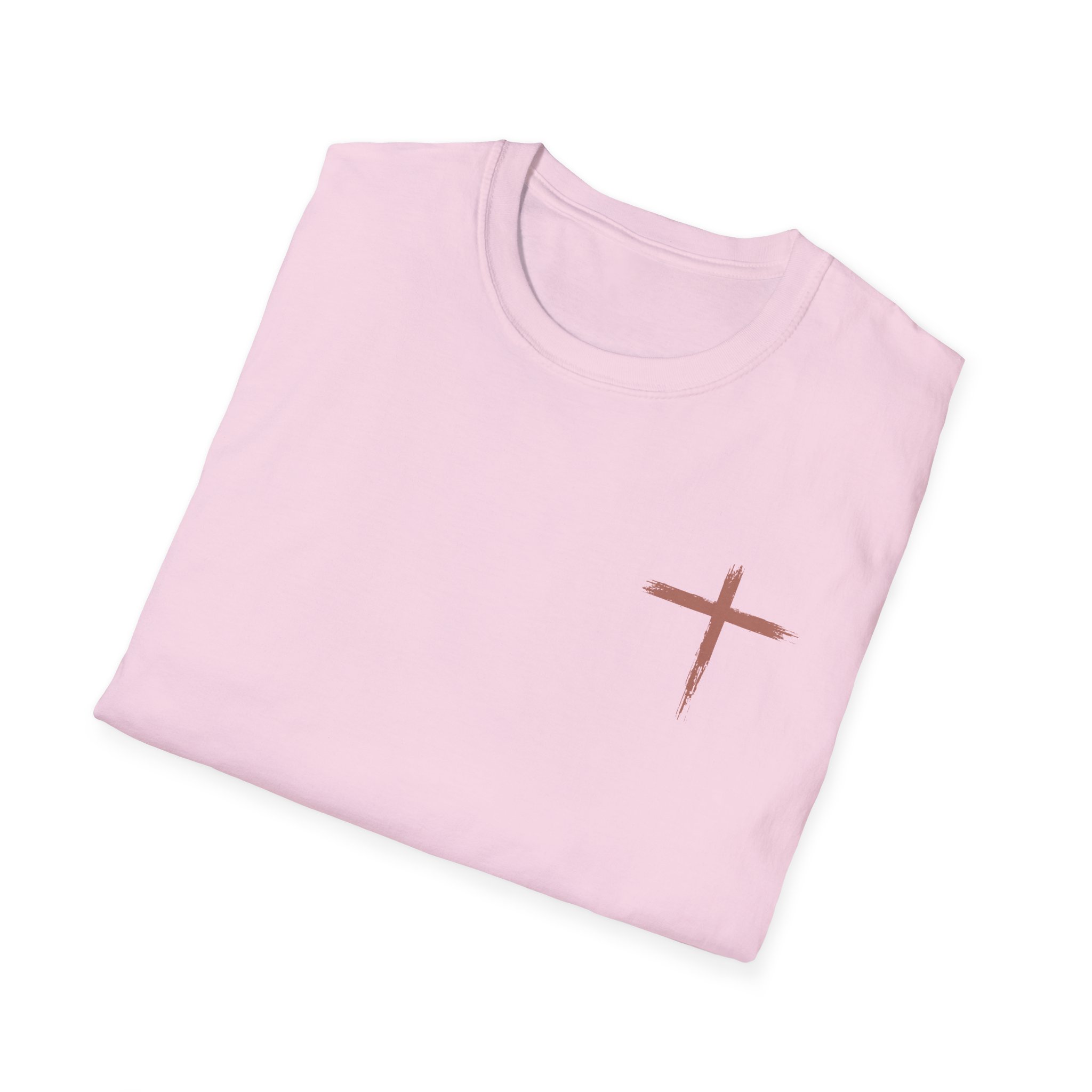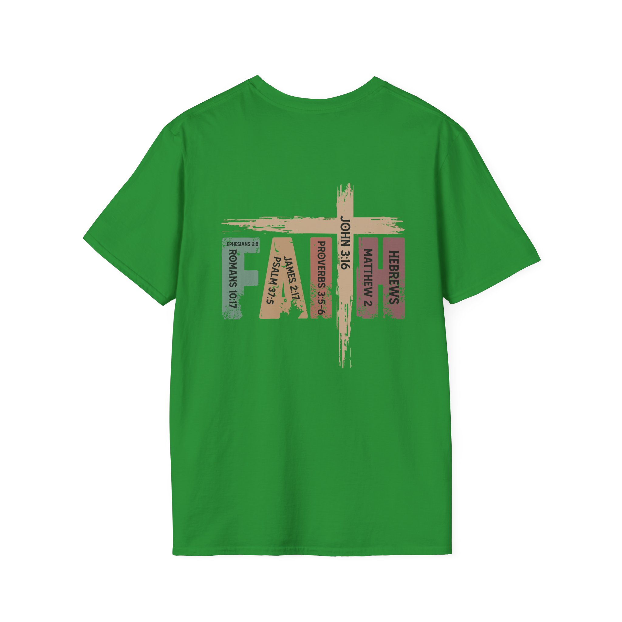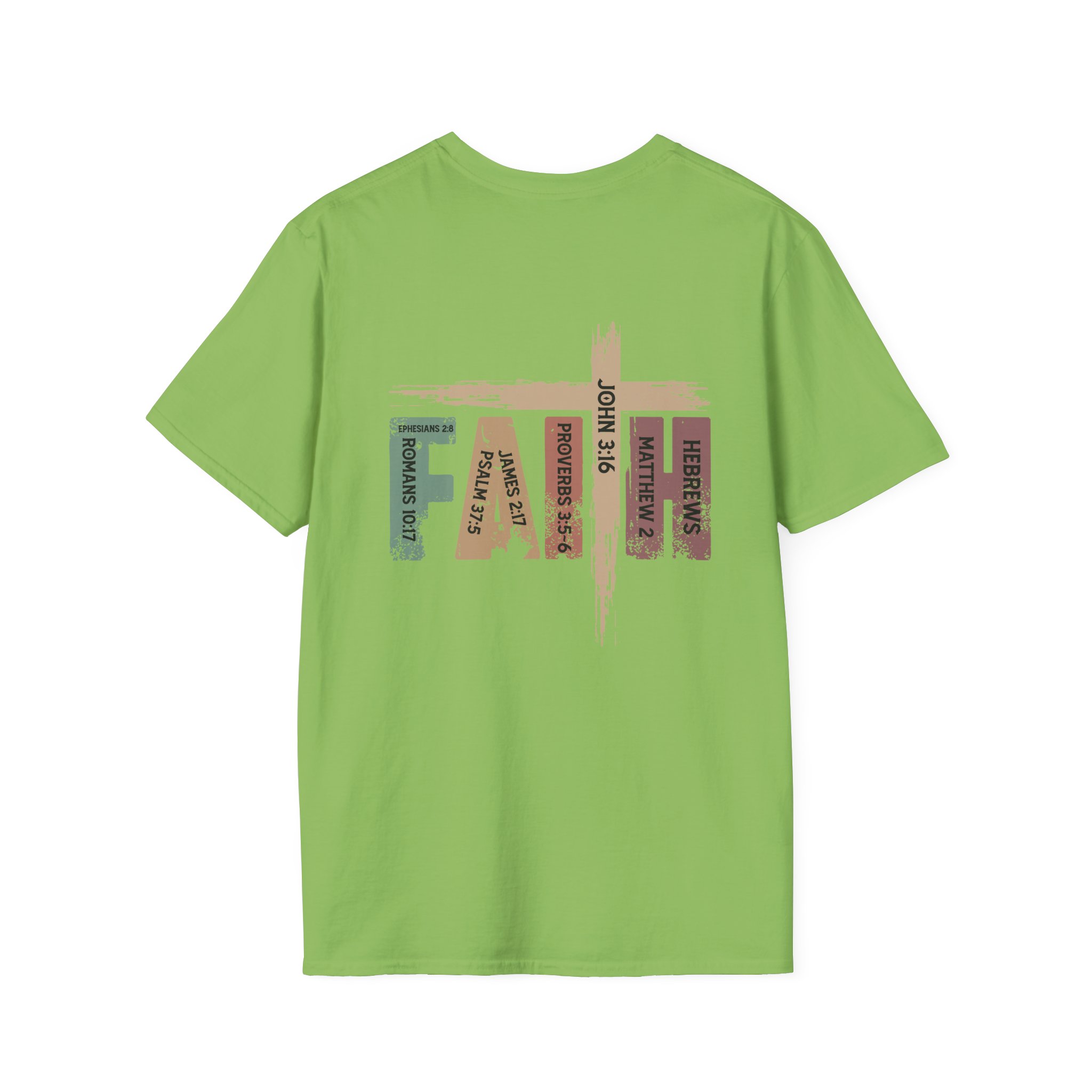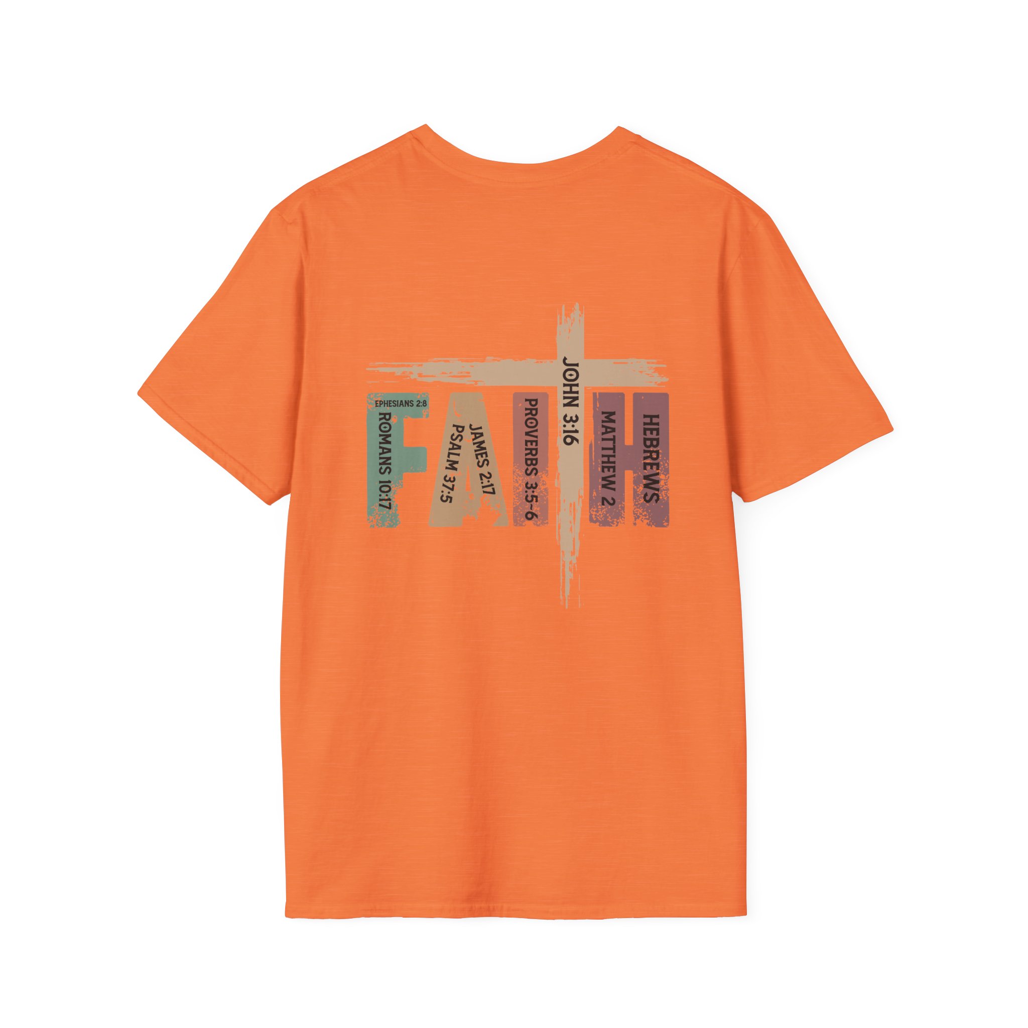 Lightweight, breathable cotton tee with a quiet, faith-forward design that reads like a worn poster from a long walk home. The front carries a small, hand-painted cross over the heart; the back unfolds the word FAITH in textured, layered brushstrokes and earth-toned panels. It wears like a lived-in favorite—soft at the neck, smooth across the chest, and easy to move in—so the message feels natural, not staged. Wear it to small-group meetings, Sunday strolls, volunteer days, or when you want your convictions to be felt more than advertised.