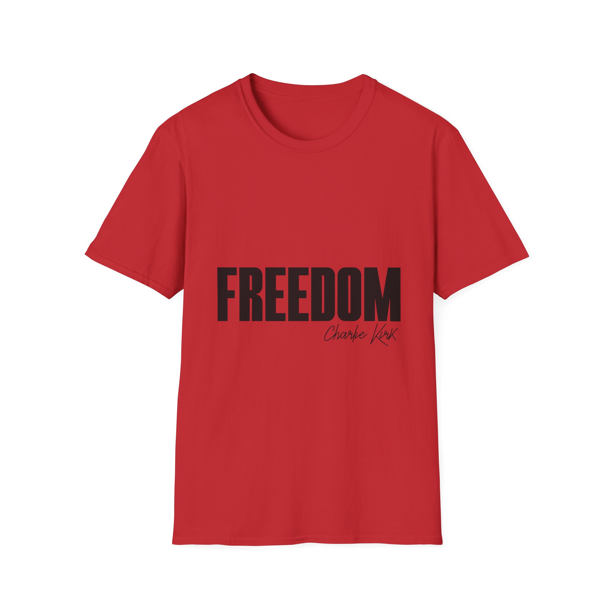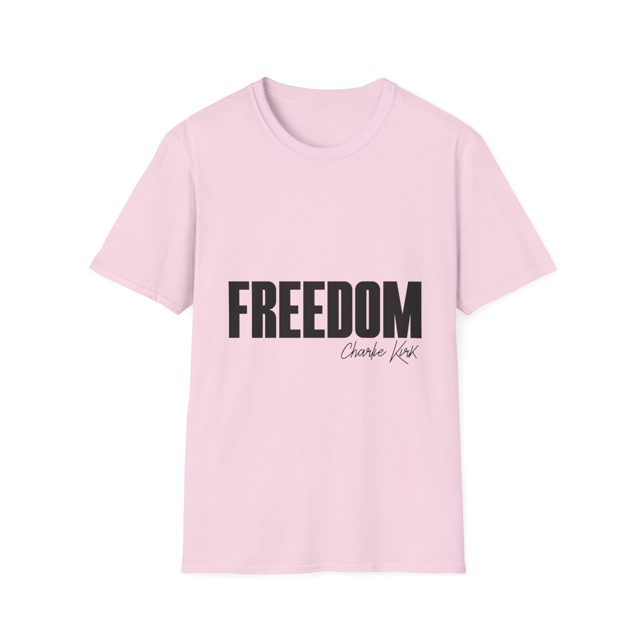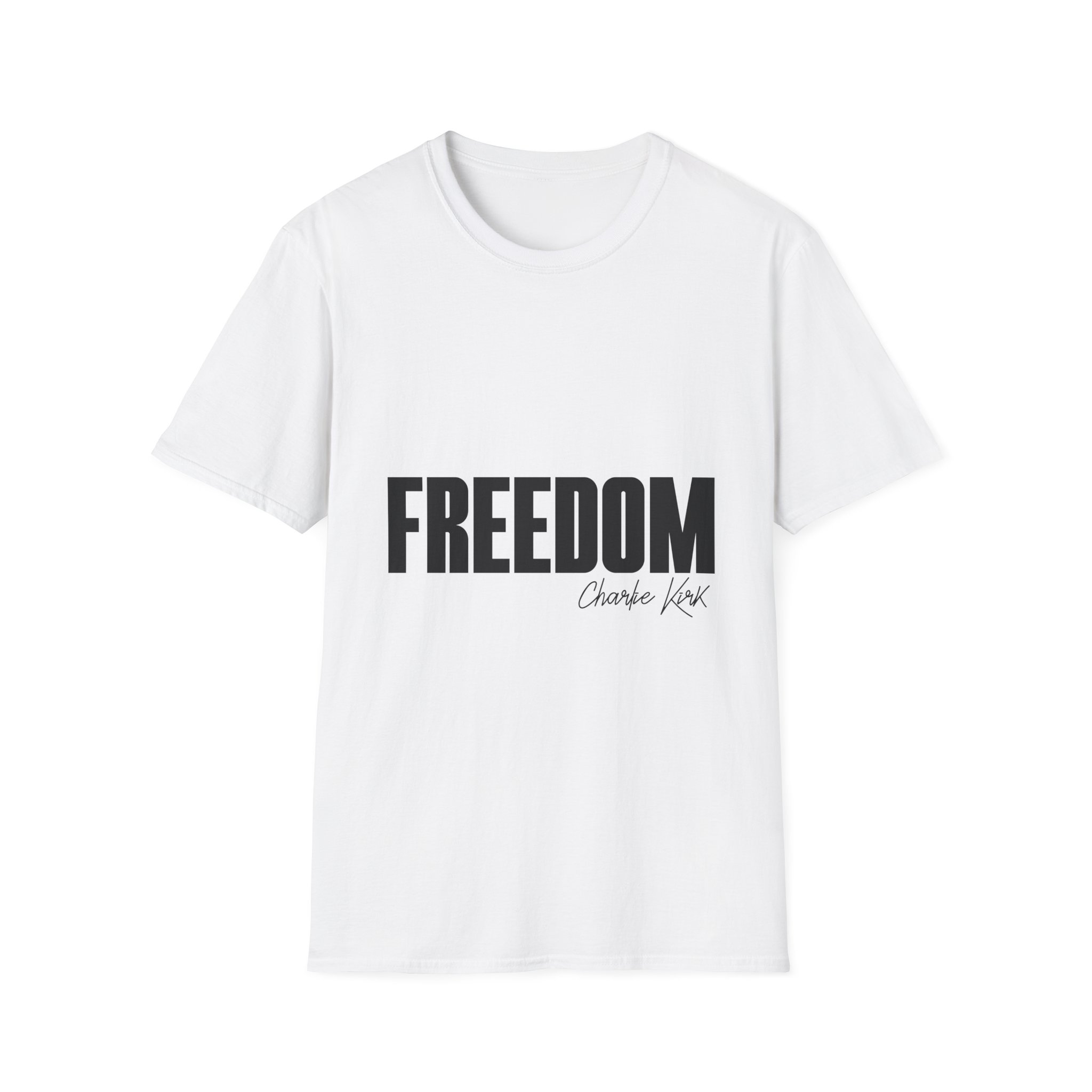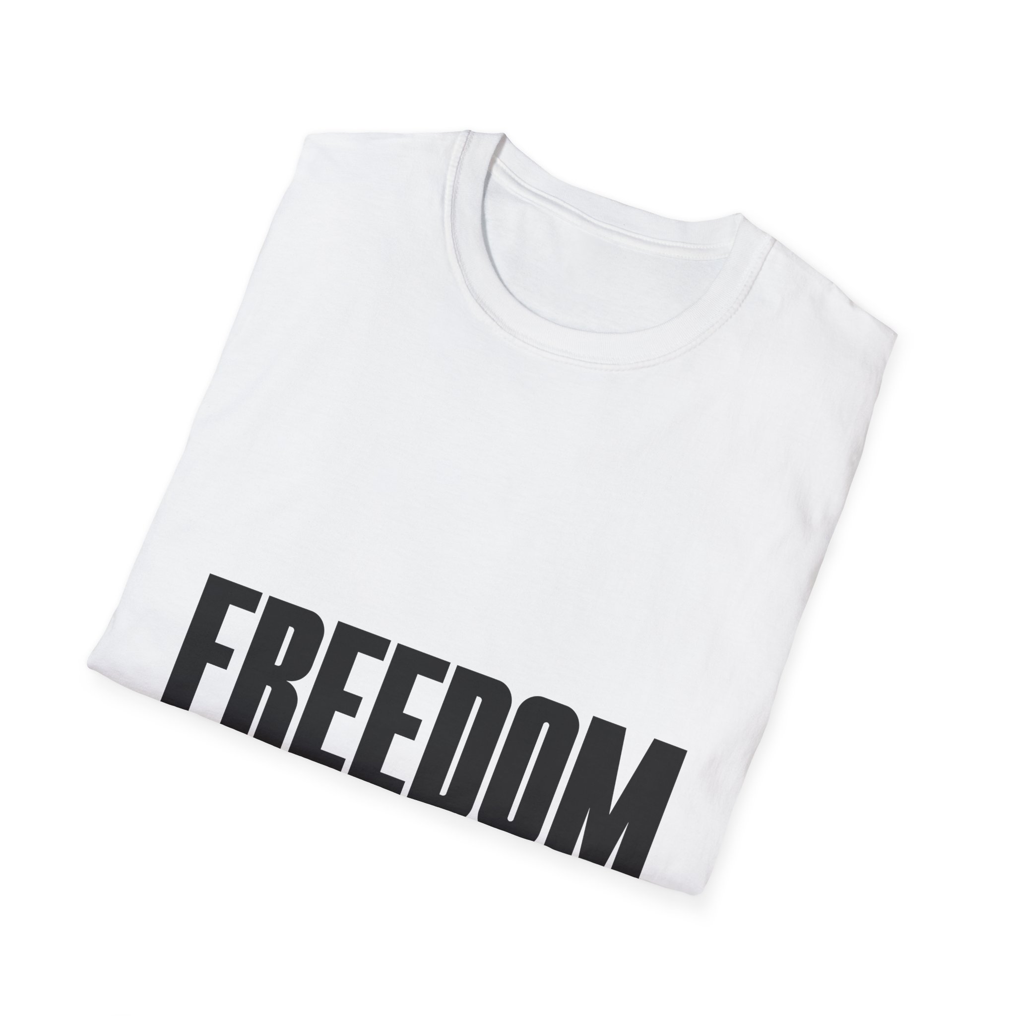 A soft, breathable tee that carries a quietly bold message: “FREEDOM” in strong, clean type with a subtle signature beneath. Lightweight ring-spun cotton drapes easily and feels gentle against skin, while the crew neckline and classic fit keep the silhouette timeless and wearable every day. Wear it layered under a jacket for a city morning or alone on a warm afternoon — it reads like a personal statement without shouting. The neutral white canvas makes the black lettering pop, giving the shirt a minimalist, modern edge that slips seamlessly into casual wardrobes and activism-minded closets alike.