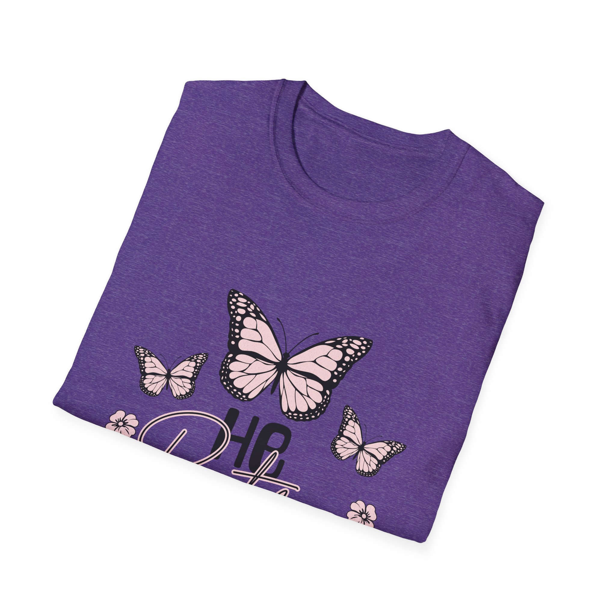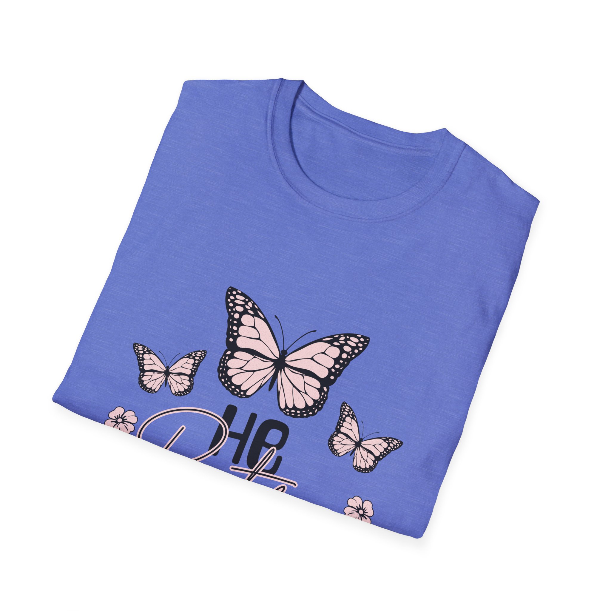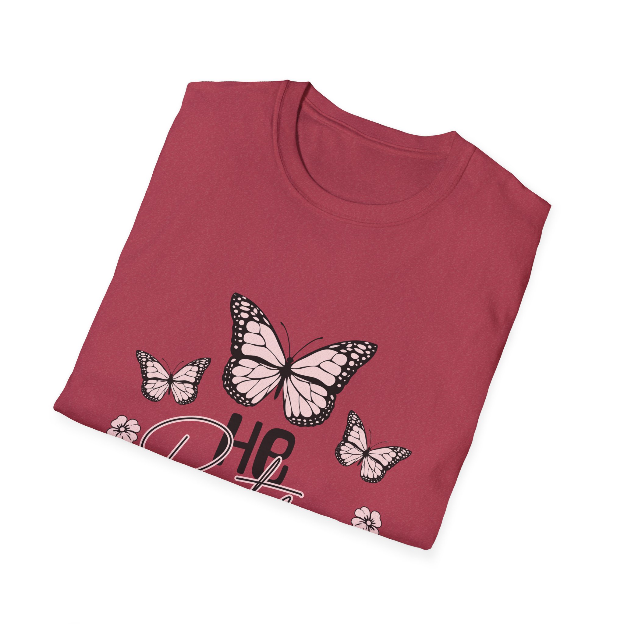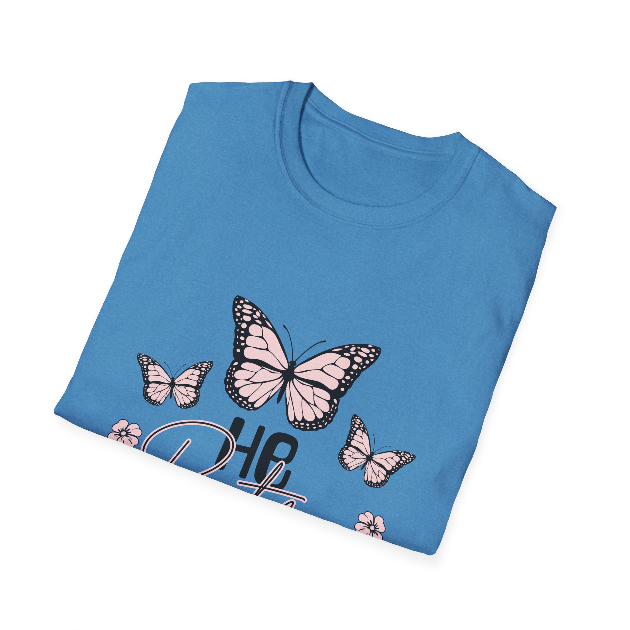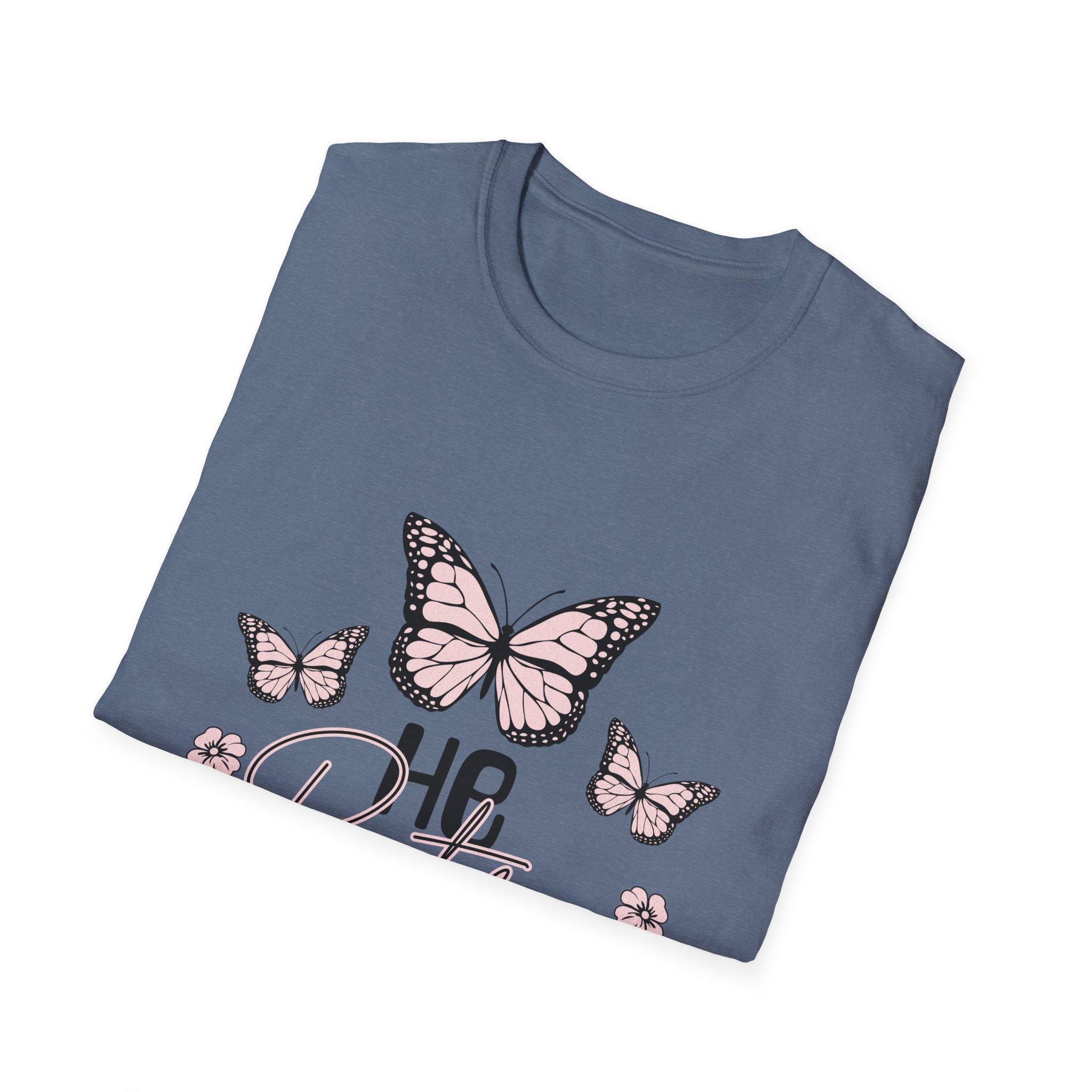 Lightweight and soft, this cotton tee carries a gentle, restorative vibe. A trio of hand-drawn butterflies and delicate floral accents float above a tender script that reads a short, hopeful line — a quiet reminder to breathe, heal, and move forward. The crew neck and classic fit keep the silhouette simple so the art stays center stage. Wear it on slow mornings with jeans and a mug of tea, or layered under a cardigan during an evening walk. It fits into lives that favor calm rituals, small joys, and quiet resilience.