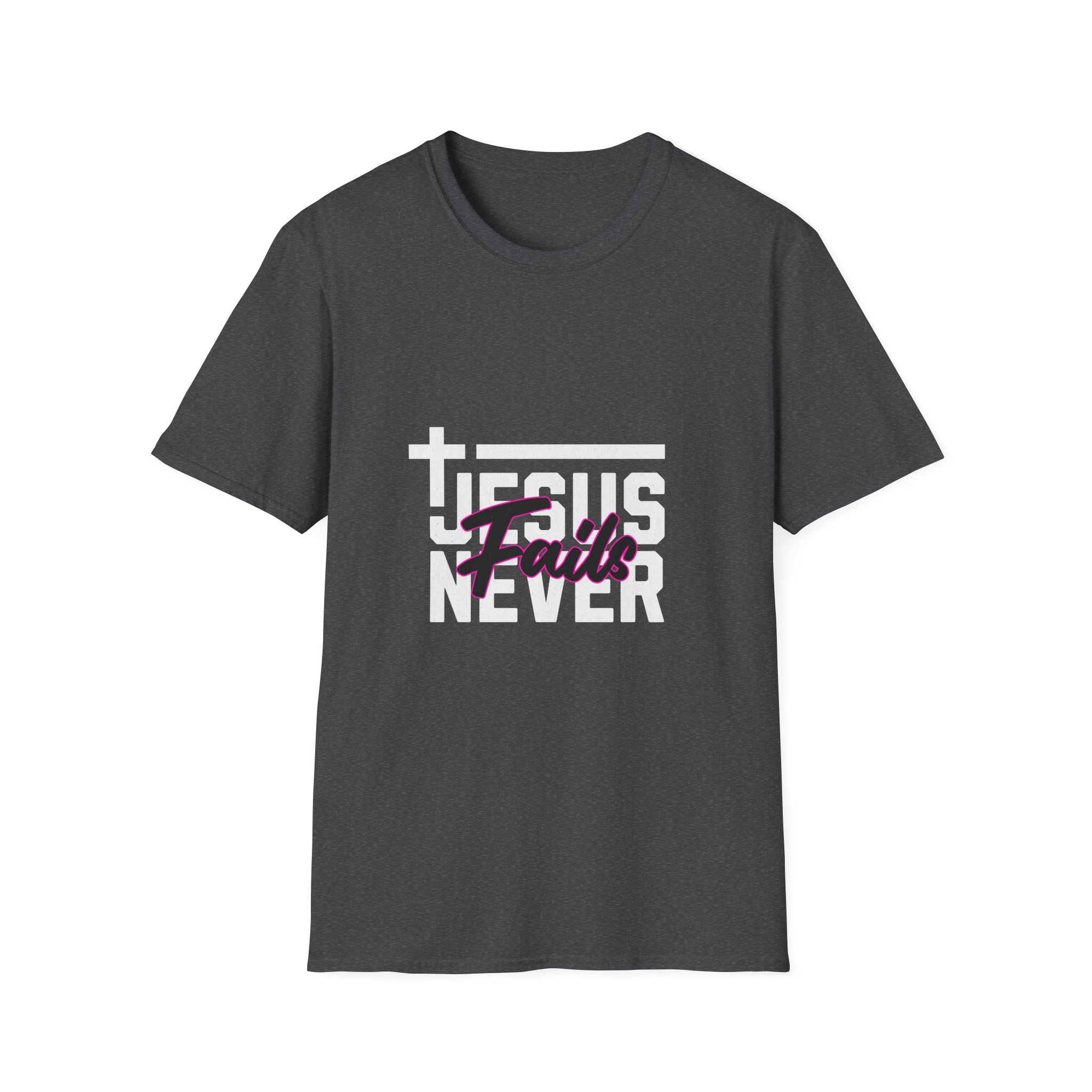 A lightweight, everyday tee that carries a quiet, faith-forward message. The soft ring-spun cotton feels gentle against skin while the clean crew neckline and classic fit keep the silhouette familiar and easy to layer. Front artwork blends bold block lettering with a hand-script overlay, making the statement feel both confident and personal. Wear it to small group nights, outreach events, or around town when you want your faith expressed simply and stylishly. The durable knit and stable shoulder tape mean this shirt holds its shape wash after wash, and the tear-away label keeps it itch-free during long days.