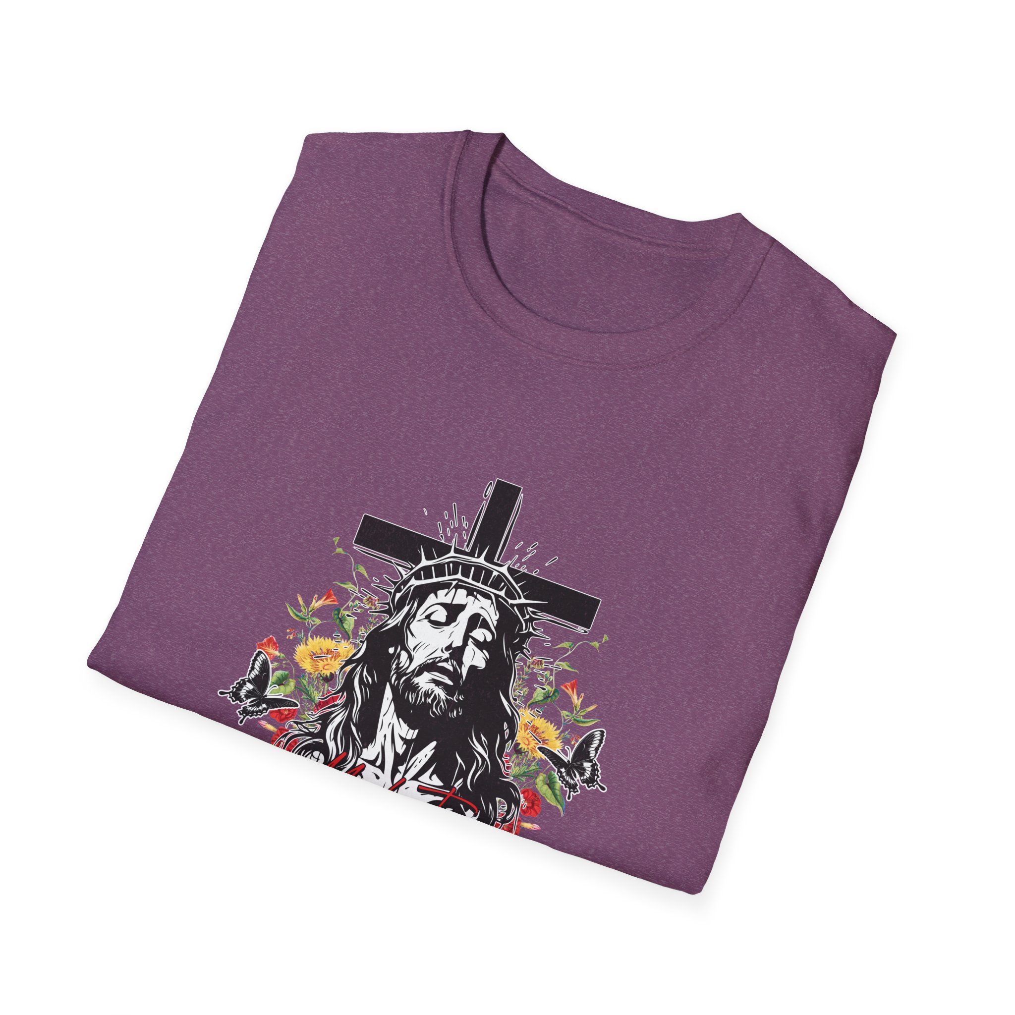 This lightweight cotton tee brings quiet devotion into everyday wear. A detailed, expressive front print shows Christ crowned with thorns beneath a cross, framed by soft floral accents and the bold word “WORSHIP” — a design that reads as both reverent and contemporary. The breathable ring-spun cotton and classic crew shape make it easy to layer under a jacket or wear on its own for church, volunteer days, or reflective moments. It’s a subtle worship statement that feels personal, comfortable, and made to be lived in.