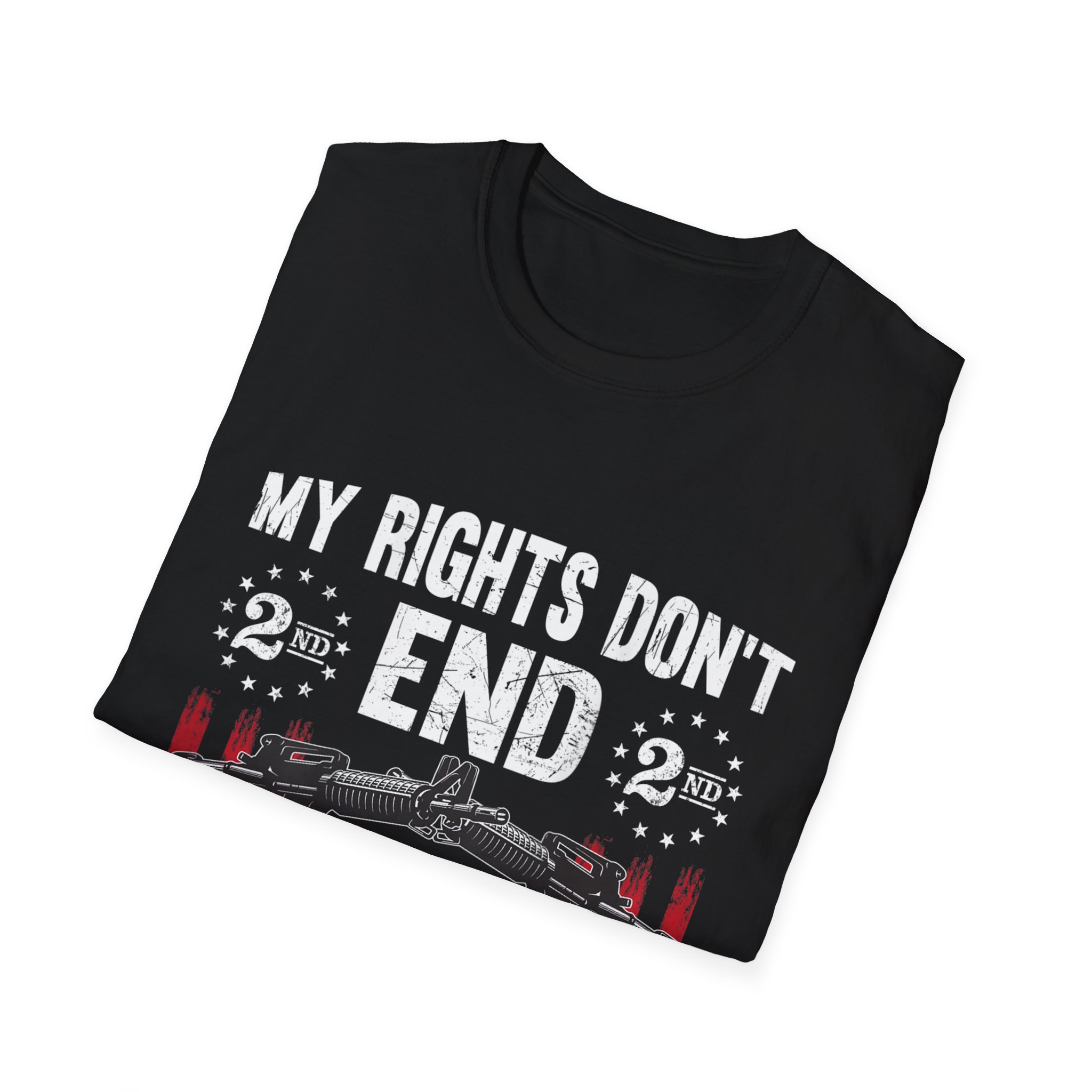 A bold, statement tee made to speak up without shouting. This lightweight cotton shirt wears like a second skin and features a striking front graphic that reads “My rights don’t end where your feelings begin” with patriotic accents and firearm silhouettes for a strong, unapologetic look. It sits clean at the crew neckline and has a classic fit that layers easily under a jacket or stands alone on warm days. Wear it to rallies, range days, or casual outings when you want your stance to be clear and comfortable. Ethically sourced cotton, a soft hand, and tear-away label keep the focus on the message—and on wearing it all day with confidence.