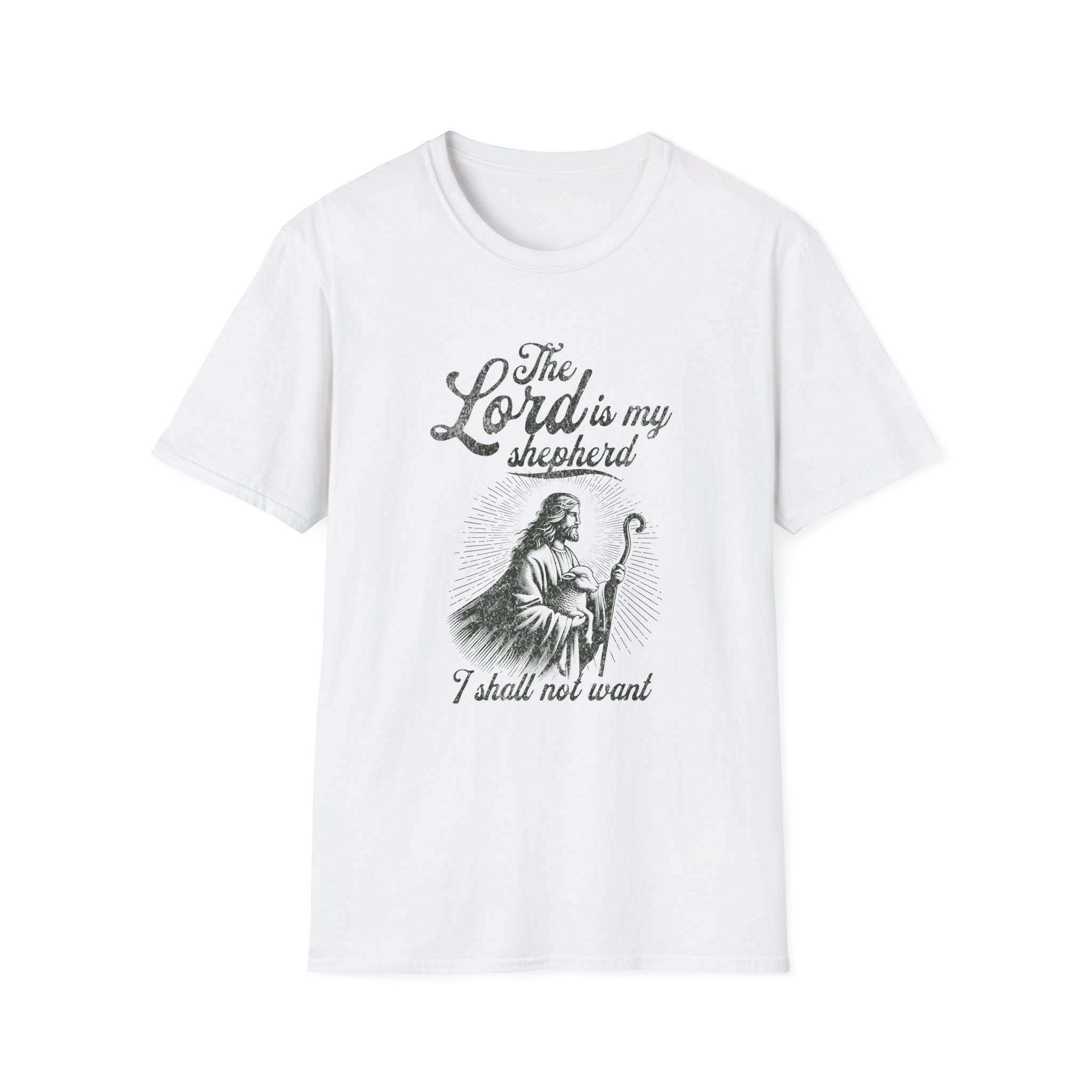 This soft, breathable cotton tee carries a quiet, devotional vibe — a gentle reminder to walk with faith through the everyday. The front art shows a classic shepherd figure accompanied by the script “The Lord is my shepherd” and “I shall not want,” rendered in a vintage, hand-drawn style that feels reverent and worn-in. Lightweight ring-spun cotton drapes softly and holds print detail beautifully, while the clean crew neckline and classic fit make it comfortable for layered Sundays, church gatherings, volunteer days, or slow mornings at home. It’s made responsibly with ethically grown cotton, tear-away label for comfort, and printed using methods that keep the artwork crisp and true. Wear it when you want your faith to feel familiar — quiet, steady, and present.